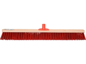 Seprű fa testtel és kemény műanyag sörtékkel a munkarészben. Masszív fém fogantyúval felszerelve a fogantyú rögzítéséhez. Hasznos külső és belső tisztítási munkákhoz, pl. por, homok, levelek, friss hó stb. felseprése