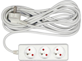 3 aljzatú hosszabbító kábel, földeléssel. Műanyag ház. Hossz 5 méter. Fehér.