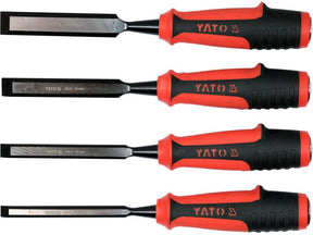 Famegmunkáló vésők tartós műanyag nyéllel. A penge CrV acélból készült. A készlet 10, 12, 16 és 20 mm széles vésőket tartalmaz.