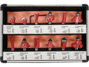 12 darabos szármaró készlet famegmunkáláshoz. Szármaró 8 mm-es YG6X volfrám-karbid vágólapkákkal, a készlet hat darab golyóscsapágyas marót tartalmaz, amelyek megkönnyítik a szerszámvezetést. Ezüstözött vágóélek, mérettűrés 0,08 mm