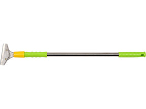 Răzuitor telescopic conceput pentru a îndepărta murdăria de pe sticlă, plăci și alte suprafețe dure. Lățimea lamei este de 100 mm. Capul de montare a lamei este din aluminiu, montat pe un mâner telescopic din tub de oțel fi 22 mm. Reglabil in intervalul 68 la 112 cm. Mânerul are prindere profilate din plastic.