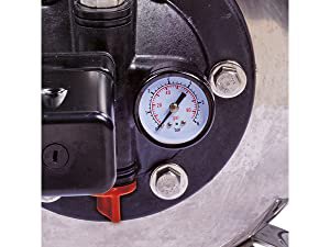 Manometrul ofera informatii despre presiunea apei in orice moment. Daca presiunea scade, pompa este pornita automat de catre presostat.