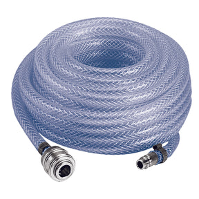 Furtunul tesut original Einhell este un furtun de inalta presiune robust si flexibil cu o lungime de 10 metri pentru compresoare cu o conexiune de 1/4 inch (interna). Furtunul de inalta presiune este proiectat pentru o presiune maxima de lucru de 15 bar, iar diametrul interior este de 6 mm. Verificarea rapida a presiunilor anvelopelor? Curatarea bancului de atelier sau utilizarea pistolului de capsare? Cu un compresor si furtunul de inalta presiune potrivit de la Einhell, aceasta nu este o problema. Furtunul lung din material PVC flexibil extinde raza la care poate fi utilizat compresorul dintr-o singura miscare. Furtunul impletit are un racord de conectare rapida de 1/4 inch si un niplu de conectare pentru o conectare usoara la compresor si pentru conectarea la toate uneltele standard cu aer comprimat.
