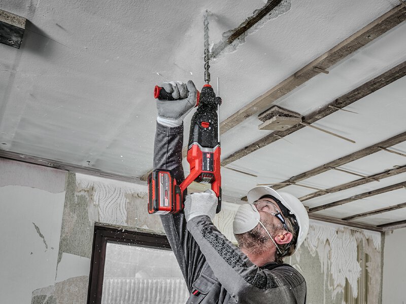 4 functii, 1 unealta – Ciocanul rotopercutor Einhell fara fir, cu 2.6 jouli de putere de percutie, combina 4 functii intr-una: gaurire, gaurire cu percutie si ciocanire cu si fara oprire de rotatie.