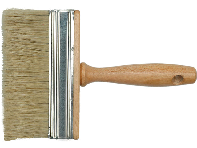 Pensula lata de 150 mm confecționată cu par natural cu un coeficient TOPS 60. Pentru toate tipurile de vopsele, adezivi pentru tapet si baituri. Mânerul din lemn și prinderea din tablă de oțel asigură o viață lungă a pensulei. Mânerul din lemn și prinderea din tablă de oțel asigură o viață lungă a pensulei.