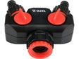 Un distribuitor solid cu racord pentru robinet echipat cu doua iesiri. Permite conectarea simultana a doua linii de apa independente la un singur robinet cu filet de 3/4" sau 1". Fabricat din materiale durabile ABS si POM, asigura o functionare fiabila si rezistenta la conditiile atmosferice si la deteriorari mecanice.