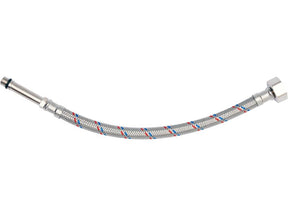 Furtun de conectare flexibil din împletitură de oțel inoxidabil. Este destinat apei calde și reci. Are certificat PZH pentru contactul cu apa potabilă. 300mm lungime. Presiune maximă 1MPa. Temp. Maxim 90. C. debit mediu 32L / min. Diametru interior 8mm și diametru exterior 12mm. Filet de conectare: 1/2 "x tata M10 (lungime 50 mm). Furtun de cauciuc din cauciuc EPDM, conexiuni din alamă nichelată.
